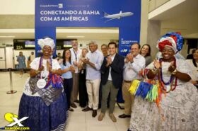 O governador Jerônimo Rodrigues comemorou os resultados recordes turismo da Bahia em 2025 durante a recepção ao voo inaugural da Copa ...