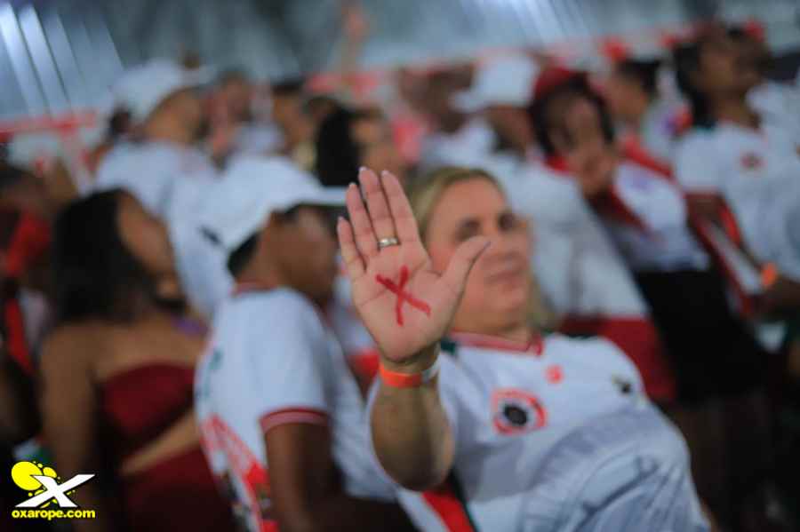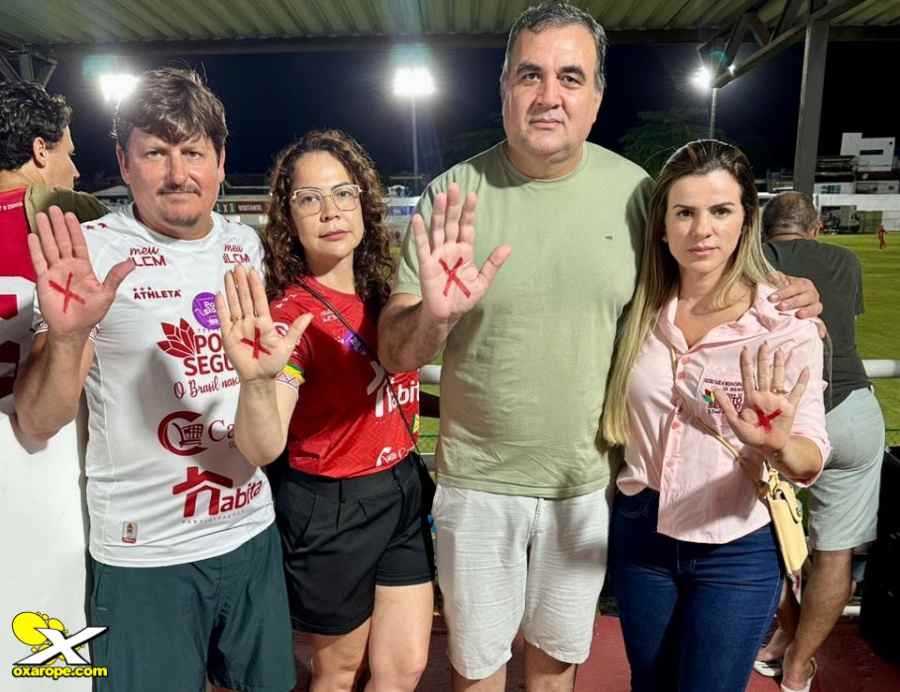 Durante o jogo, foram instaladas faixas, distribuídos adesivos e desenhado o X vermelho na mão dos jogadores, técnicos, torcida, e de algumas autoridades presentes, como o vice-prefeito Paulo Onishi e o secretário de Esportes, Hélio de Paula. “Queremos mostrar que ninguém aguenta mais a violência contra mulher e que todo lugar é lugar pra combater essa violência”, diz a coordenadora do CRAM (Centro de Referência de Atendimento à Mulher), Andrea Comenale.