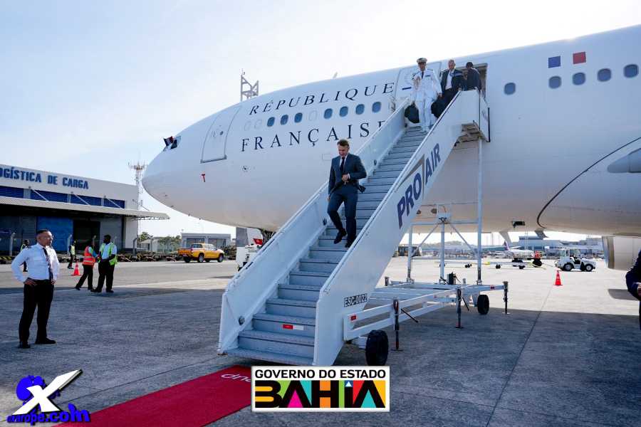 O governador Jerônimo Rodrigues recepcionou o presidente da França, Emmanuel Macron, que desembarcou no Aeroporto de Salvador na tarde desta quarta-feira (5), para o início de uma agenda dedicada à cultura e à cooperação internacional. Ao lado da ministra da Cultura, Margareth Menezes, o governador participa de compromissos que incluem visita ao Pelourinho e a abertura oficial do Festival Nosso Futuro Brasil-França: Diálogos com a África, no Museu de Arte Moderna da Bahia (MAM).