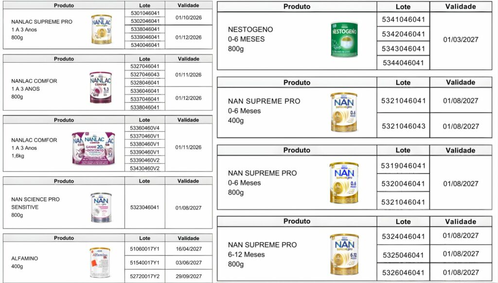 A Prefeitura de Eunápolis, por meio da Vigilância Sanitária Municipal, informa que a Anvisa publicou, nesta quarta-feira (7), a Resolução nº 32/2026, que proíbe a comercialização, distribuição e uso de determinados lotes de fórmulas infantis das marcas Nestogeno, Nan Supreme Pro, Nanlac Supreme Pro, Nanlac Comfor, Nan Sensitive e Alfamino, da empresa Nestlé Brasil Ltda.